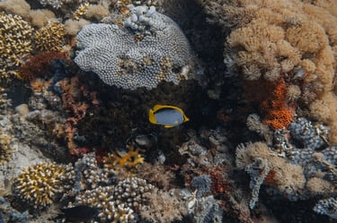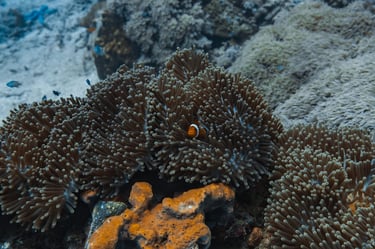 We explore dive sites around six beautiful islands in the east. While encounters with whale sharks or manta rays are rare, they do happen from time to time. More commonly, you’ll spot clownfish (yes, “Nemo”!), along with vibrant coral reefs full of life. Look closely, and you might discover some of the tiny, well-camouflaged critters hiding among the corals – perfect for macro lovers!